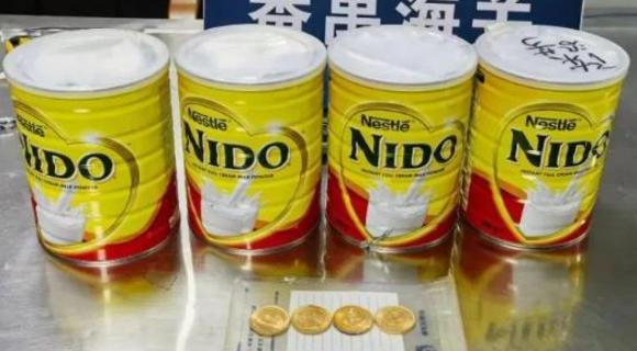 现场关员随即对4罐奶粉进行开拆检查,将奶粉倾倒后发现每罐奶粉内均藏有1枚金币,4枚金币总重136克。经国家珠宝玉石质量检验检测中心鉴定,被查获金币的黄金纯度为22K金(含金量达91.6%)。