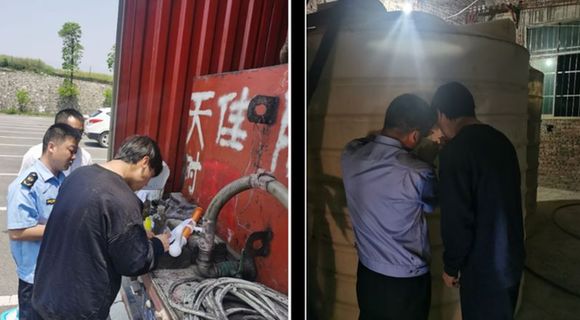 2023年8月2日19时左右,开封市生态环境局禹王台分局(下称禹王台分局)执法人员到禹王台精细化工园区利用无人机开展日常执法检查,发现开封裕诚化工有限公司(下称裕诚公司)院内有一可疑罐车在生产车间楼下,正在通过软管从车间楼顶一储罐向罐车内灌注生产废水。执法人员随即在公司附近蹲守,密切关注罐车动向。当晚22时左右,罐车从该公司院内驶出,沿途多次停车观察,并在开尉路贾鲁河大桥附近长时间停留,随后行驶至尉氏县的一处废弃养鸭厂内,驾驶员和随车人员将罐车内生产废水(经鉴定为危险废物)通过提前铺设好的地下暗管直接排入河内,禹王台分局立即将该情况通报开封市生态环境局尉氏分局(下称尉氏分局),会同当地公安机关现场控制罐车司机及随车人员。