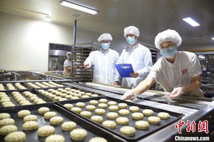 北京市通州区市场监管局对月饼生产企业开展检查。北京市市场监管局供图
