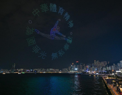 香港举行“体育力量 闪耀香江”大型无人机表演