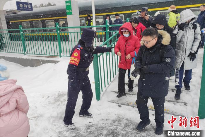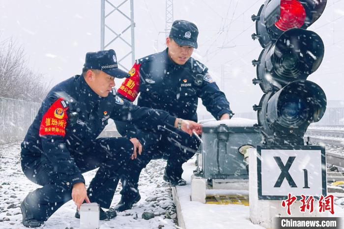 陕西多地迎来大范围雨雪天气,为确保管内铁路运输和旅客乘车安全,西安铁路公安局西安公安处启动应对雨雪恶劣天气应急预案。各线路派出所加强线路治安隐患排查,确保春运铁路运输线路畅通;各车站增派警力加大对进站口、候车室等场所秩序维护,让旅客出行更加便捷高效;各趟列车密切配合客运部门做好运输工作,确保旅客出行平安。图为西安铁路公安局西安公安处交警帮助抛锚车主推车。张鑫摄