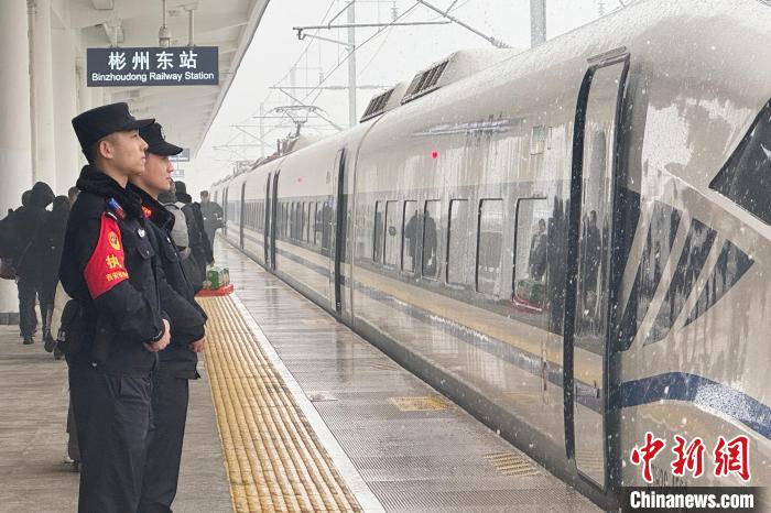 图为民警在站台立岗确保旅客乘车安全。张鑫 摄