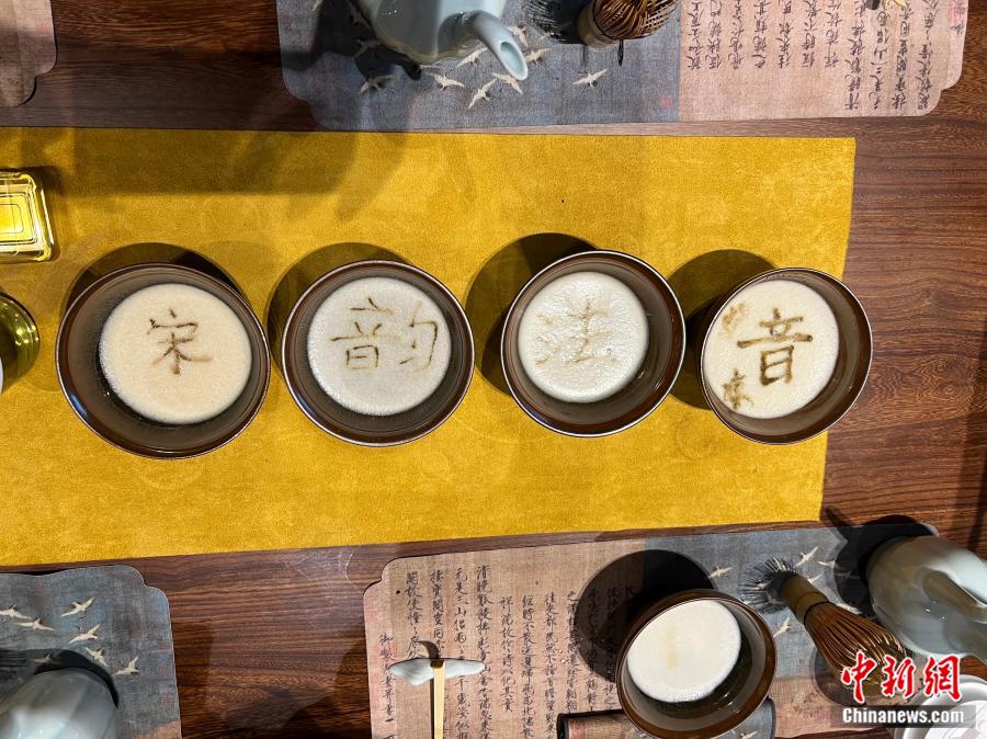 随后,采访团走进最受年轻人欢迎的“宋风四雅”体验区。点茶师以茶膏为墨,在茶汤上勾勒“清朗网络”图案;插花艺术展中,梅兰竹菊对应“文明用网四准则”。在感受宋代雅致生活美学的同时,也可体验非遗普法带来的雅致。