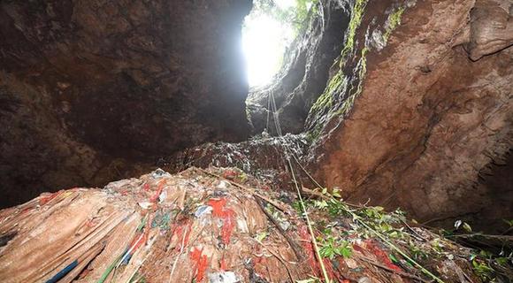 参与此地垃圾清运的某户外运动公司负责人朱辉说,通过绳索与大型机械配合,每天能清运约10吨垃圾,但由于大田坑溶洞内部结构复杂,尚不清楚里面垃圾总量到底有多少。