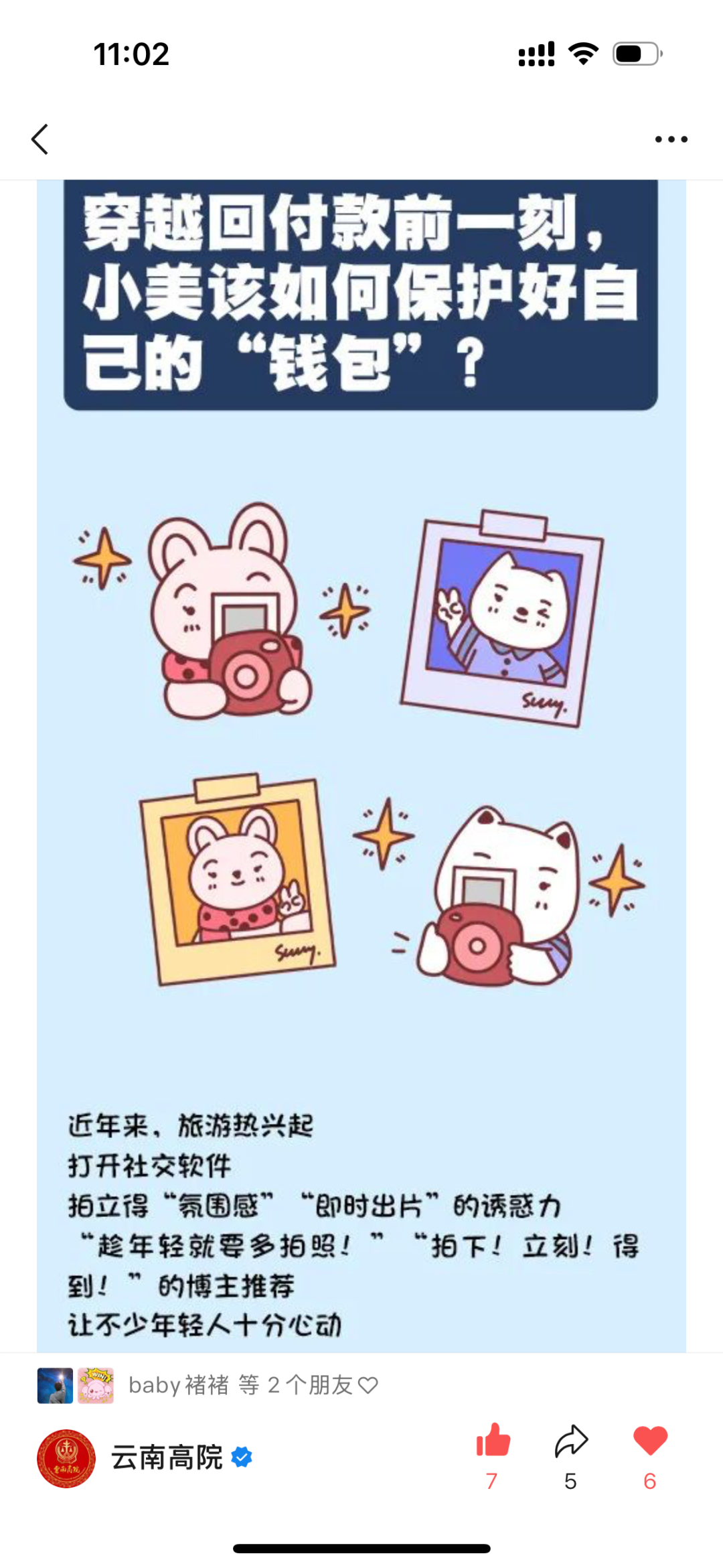 “燕燕”“陶陶”与古城群众的点滴互动也都被“青衿法语·动漫普法”团队巧妙转化为系列动漫普法素材——辗转购买拍立得的经历延伸为《穿越回付款的那一刻,小美如何保护好自己的钱包》反诈知识;《金毛公主千里归家记》以清新国风漫画诠释生态保护中的司法智慧;健身房办卡故事演绎成买卖合同纠纷案例;把“地球不爆炸,我们不放假”的趣味热梗写进《记者节来临之际,我们把法宣人画到漫画里》的故事里......在系列漫画作品中, “燕燕”“陶陶”漫步古城巷陌,金句频出,让法条瞬间活了起来。