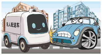 这一幕折射出当下无人驾驶技术加速落地背后的现实困境——无人配送车驶入街头,带来的是一系列亟待破解的法律难题。