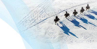 “海东青”骑警队骑警在内蒙古呼伦贝尔市陈巴尔虎旗的雪原上巡逻。新华社记者 马金瑞摄